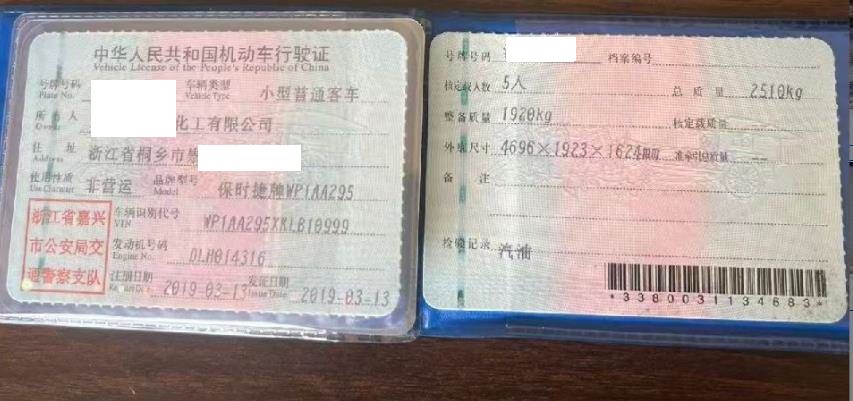 车辆归属地 浙江省嘉兴市 车辆停放仓库 浙江省嘉兴市嘉兴市