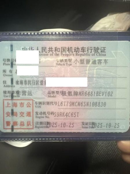 初次登记日期 2025-10-25 车辆名称 极氪牌