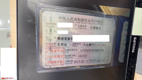 车辆归属地 广东省中山市 车辆停放仓库 广东省佛山市佛山市