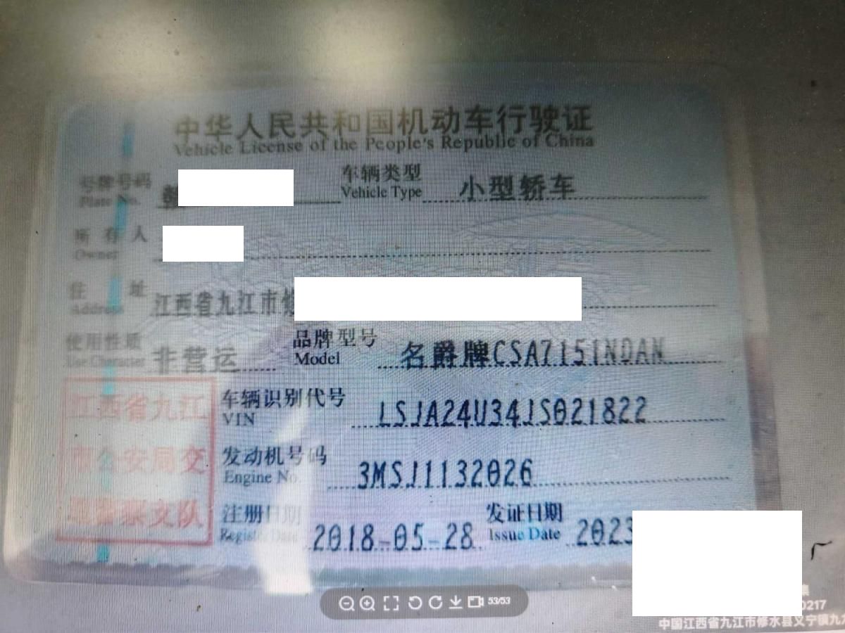 车牌号 赣****** 品牌 名爵