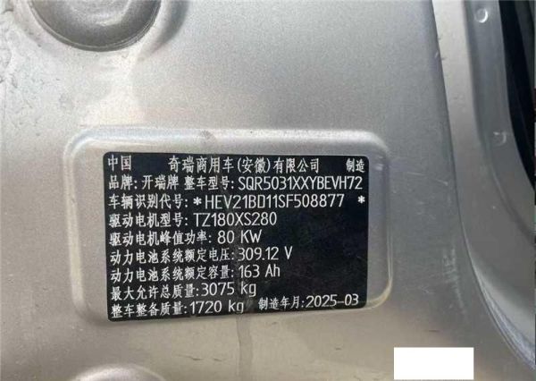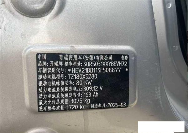 初次登记日期 2025-08-19 车辆名称 开瑞牌