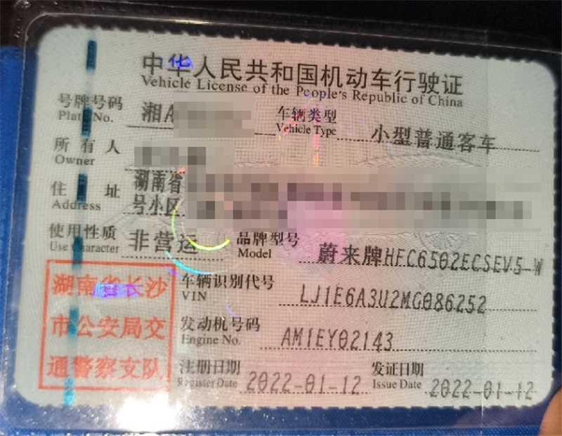 车牌号 湘****** 品牌 蔚来