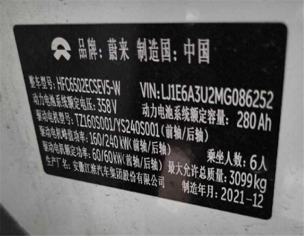 初次登记日期 2022-01-12 车辆名称 蔚来牌