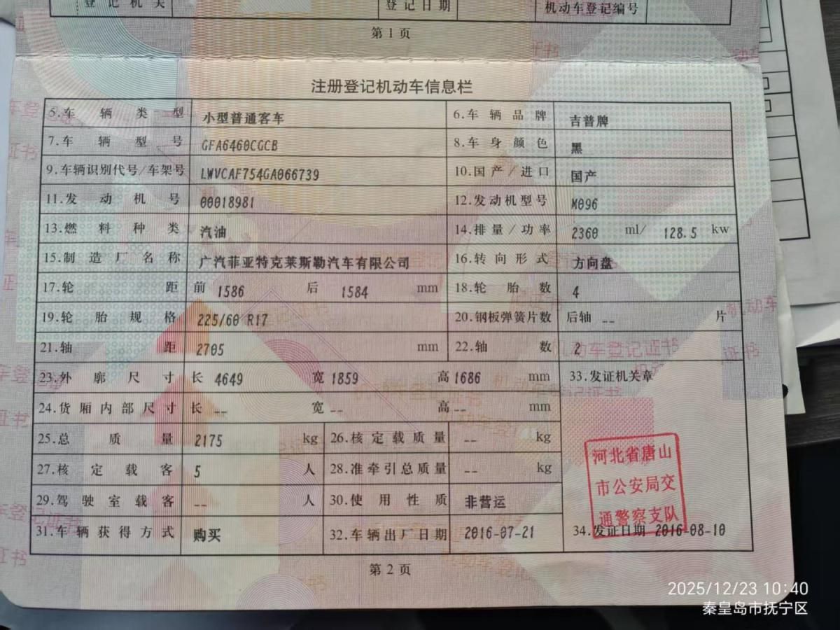 底盘号码 LWVCAF754GA066739 变速箱类型 手自一体