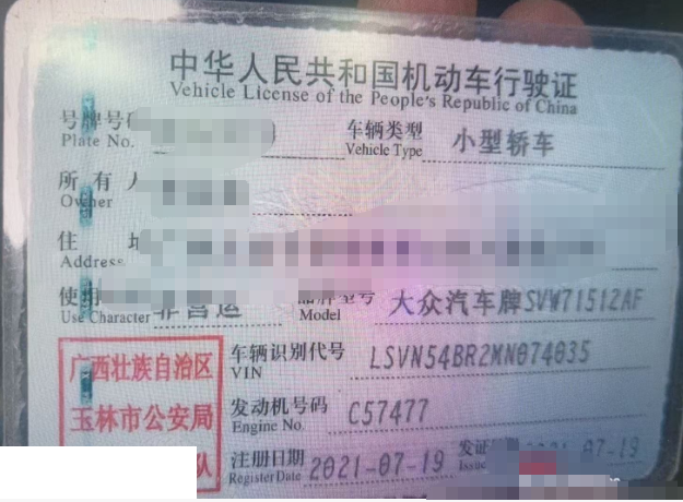车牌号 桂****** 品牌 大众