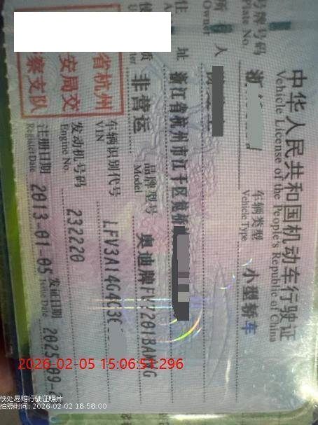 初次登记日期 2013-01-05 车辆名称 奥迪A6L