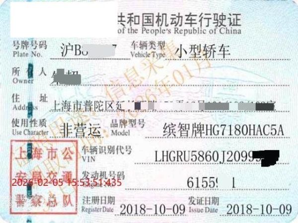 车牌号 沪****** 品牌 本田