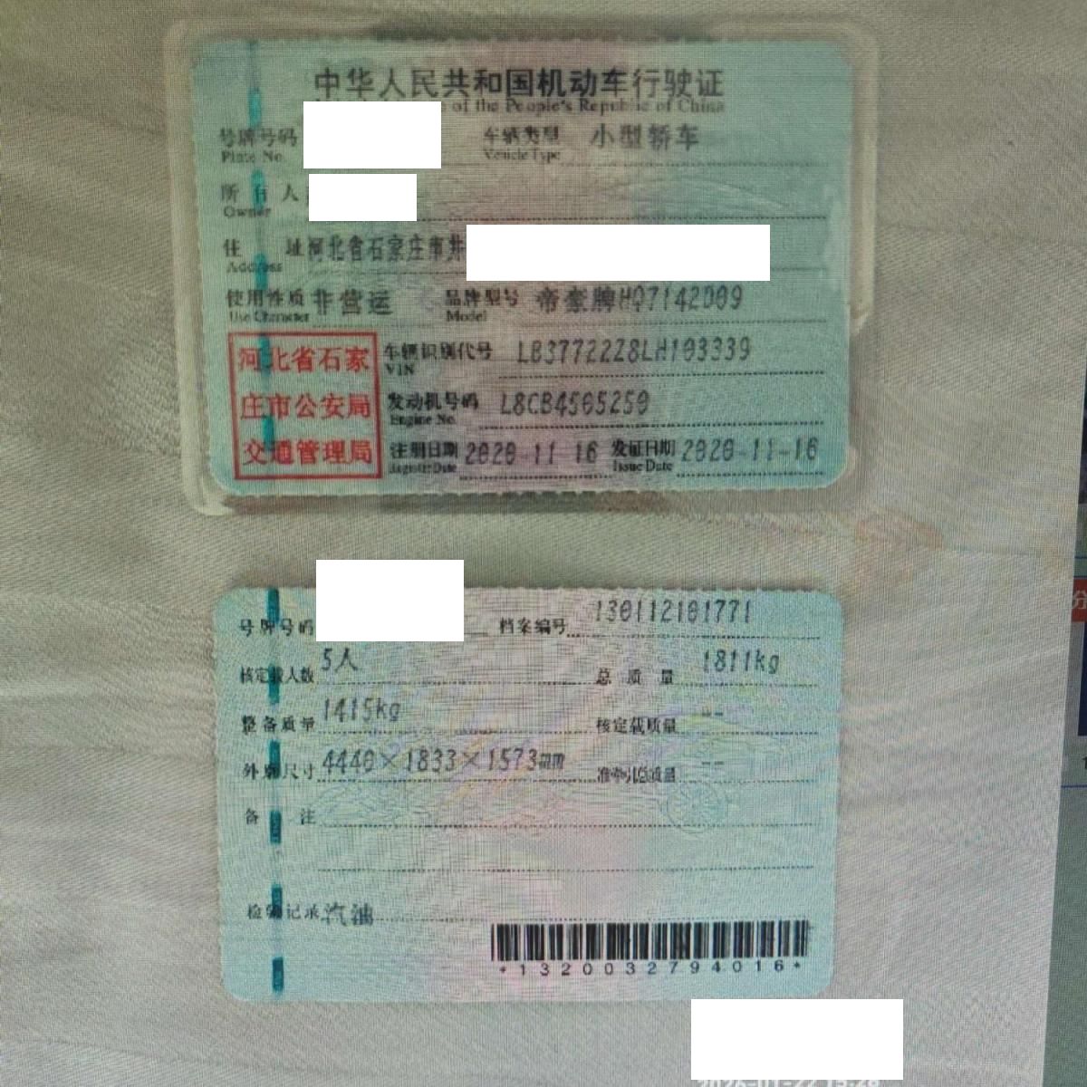 车牌号 冀****** 品牌 吉利