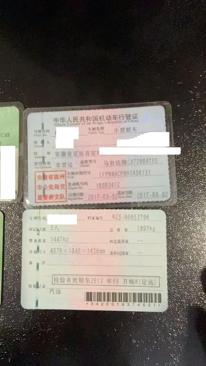 车牌号 皖****** 品牌 马自达
