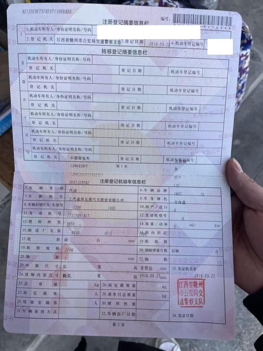 初次登记日期 2014-09-22 车辆名称 五菱汽车 五菱荣光