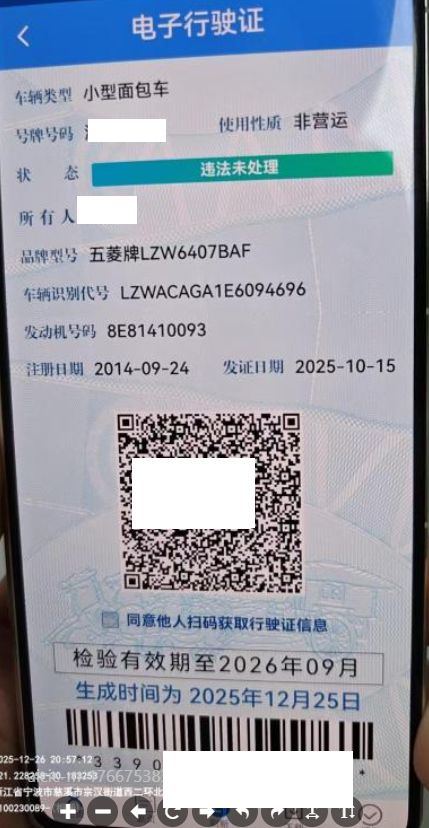 车牌号 浙****** 品牌 五菱