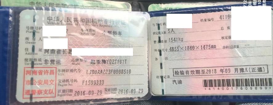 车辆归属地 河南省许昌市 车辆停放仓库 河南省许昌市许昌市