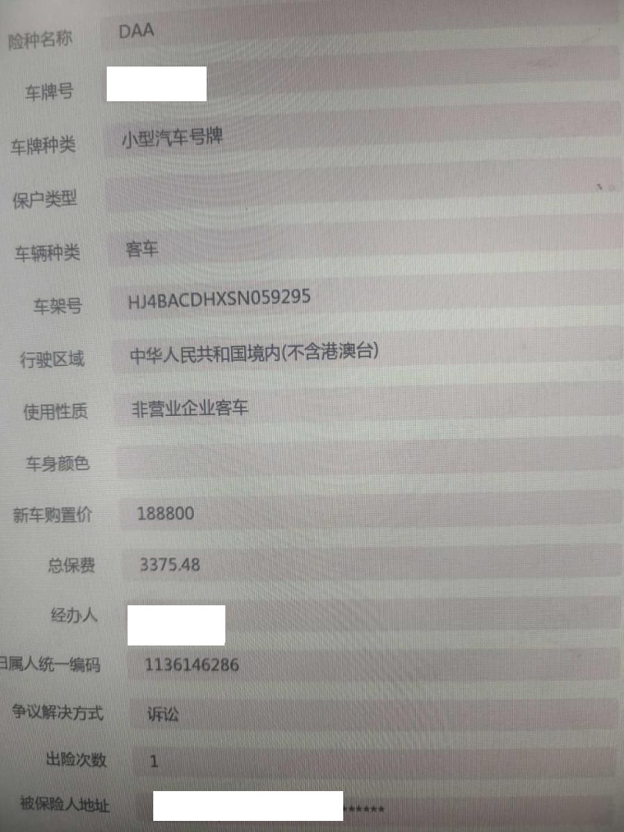 车架号是否受损 未知 使用性质 非营运