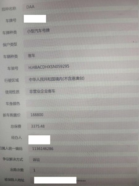 保险金额 ¥198800 预估维修金额