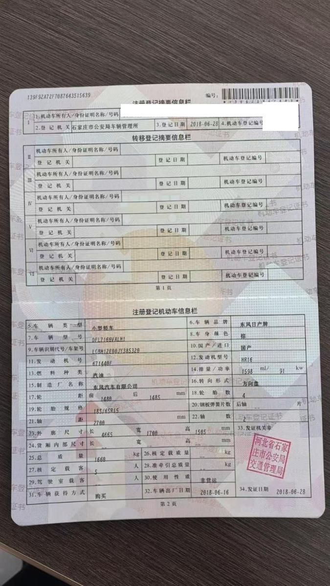 初次登记日期 2018-06-28 车辆名称 日产 轩逸