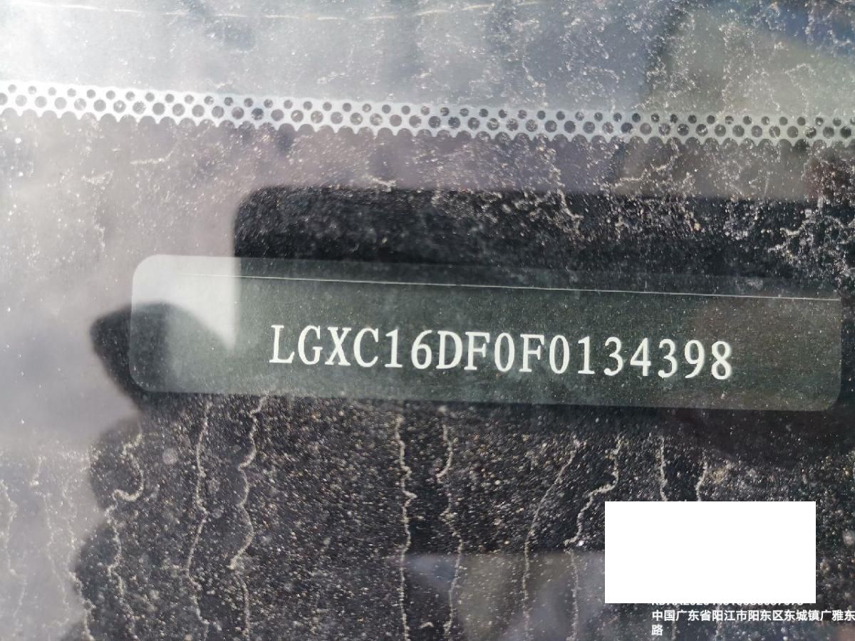 底盘号码 LGXC16DF0F0134398 变速箱类型 手动