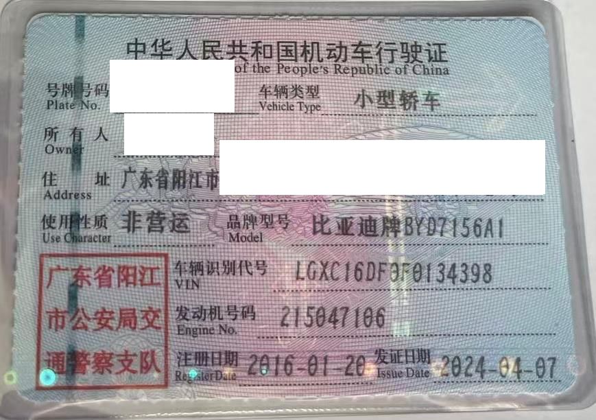 车辆归属地 广东省阳江市 车辆停放仓库 广东省阳江市阳江市