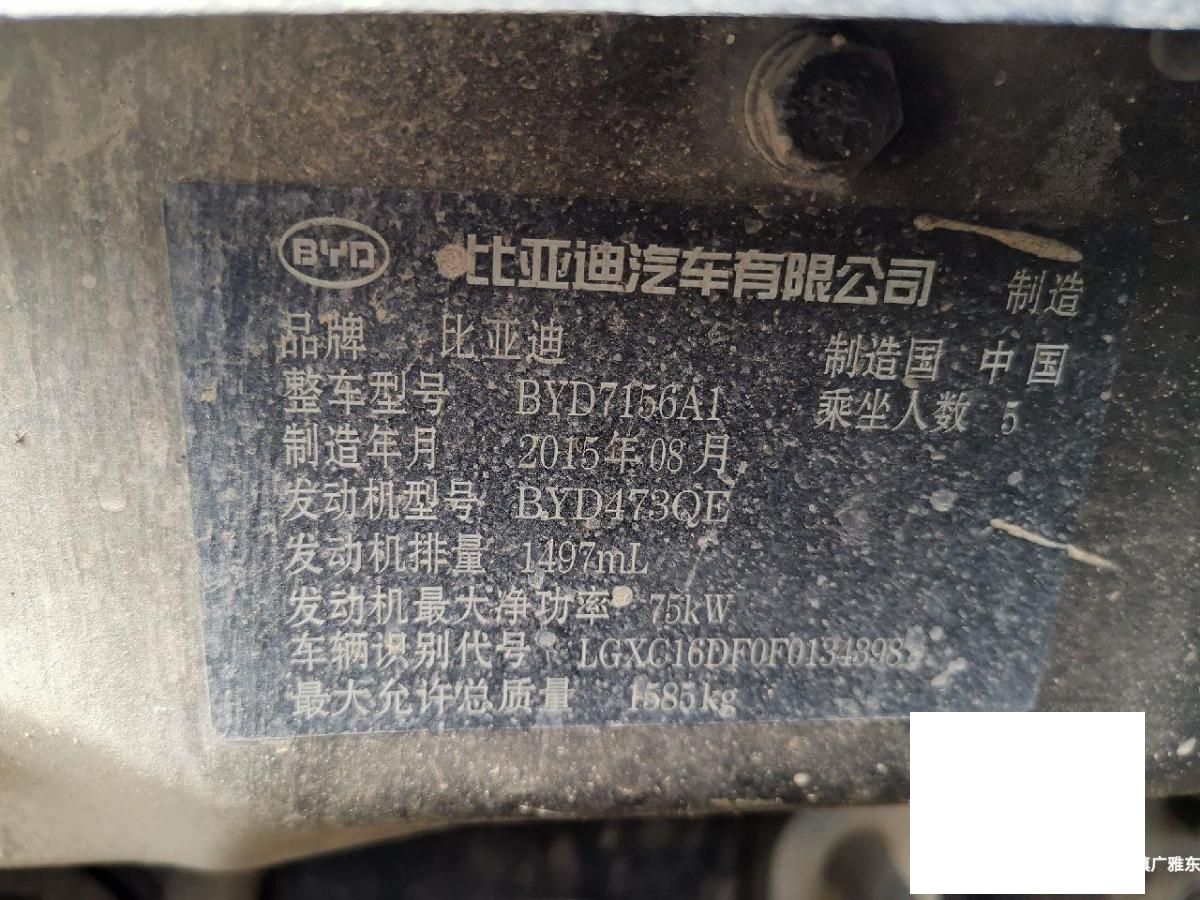 初次登记日期 2016-01-20 车辆名称 比亚迪F3