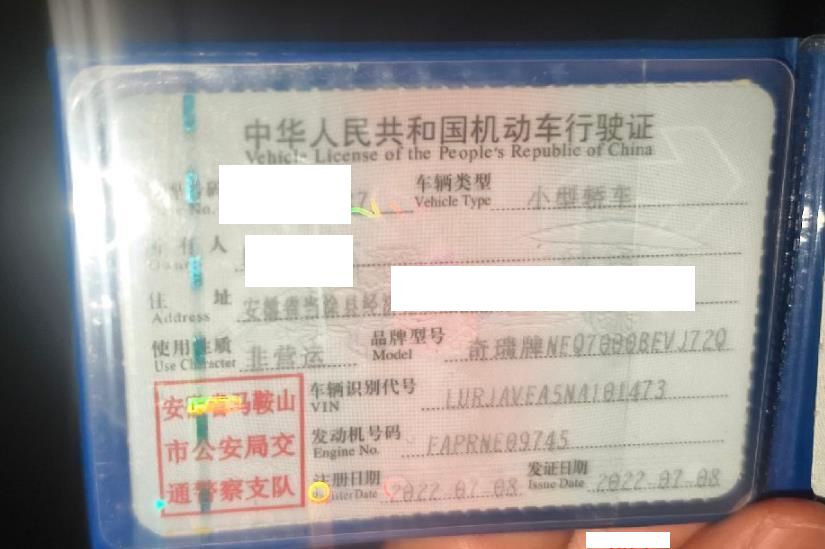 车牌号 皖****** 品牌 奇瑞