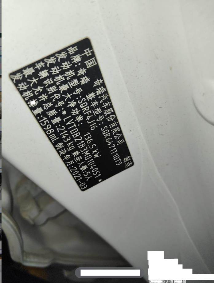 车牌号 赣****** 品牌 奇瑞