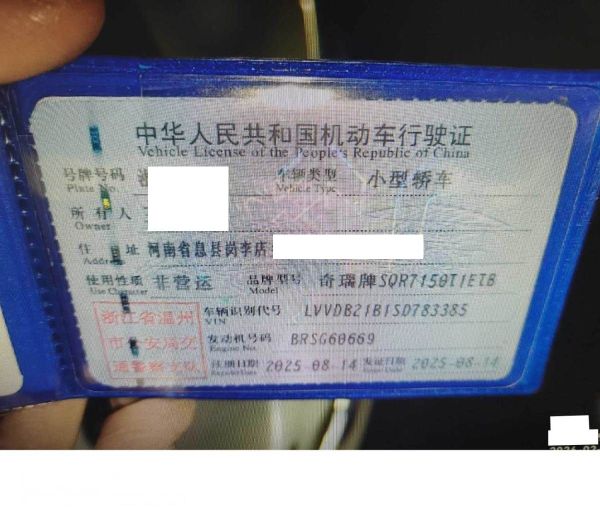 初次登记日期 2025-08-14 车辆名称 奇瑞 瑞虎7