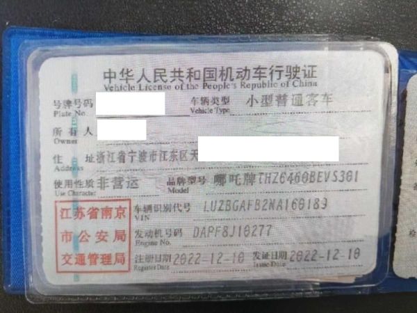初次登记日期 2022-12-10 车辆名称 哪吒汽车 哪吒