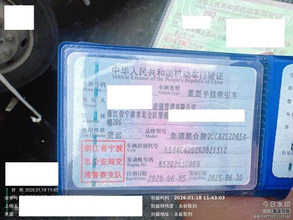 车辆归属地 浙江省宁波 车辆停放仓库 浙江省宁波市北仑区