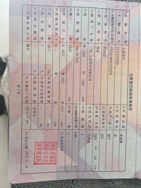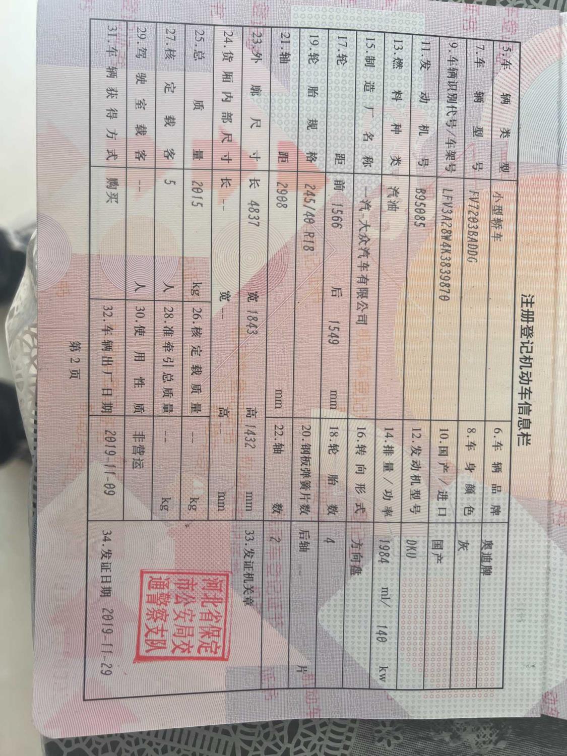 初次登记日期 2019-11-29 车辆名称 奥迪A4L