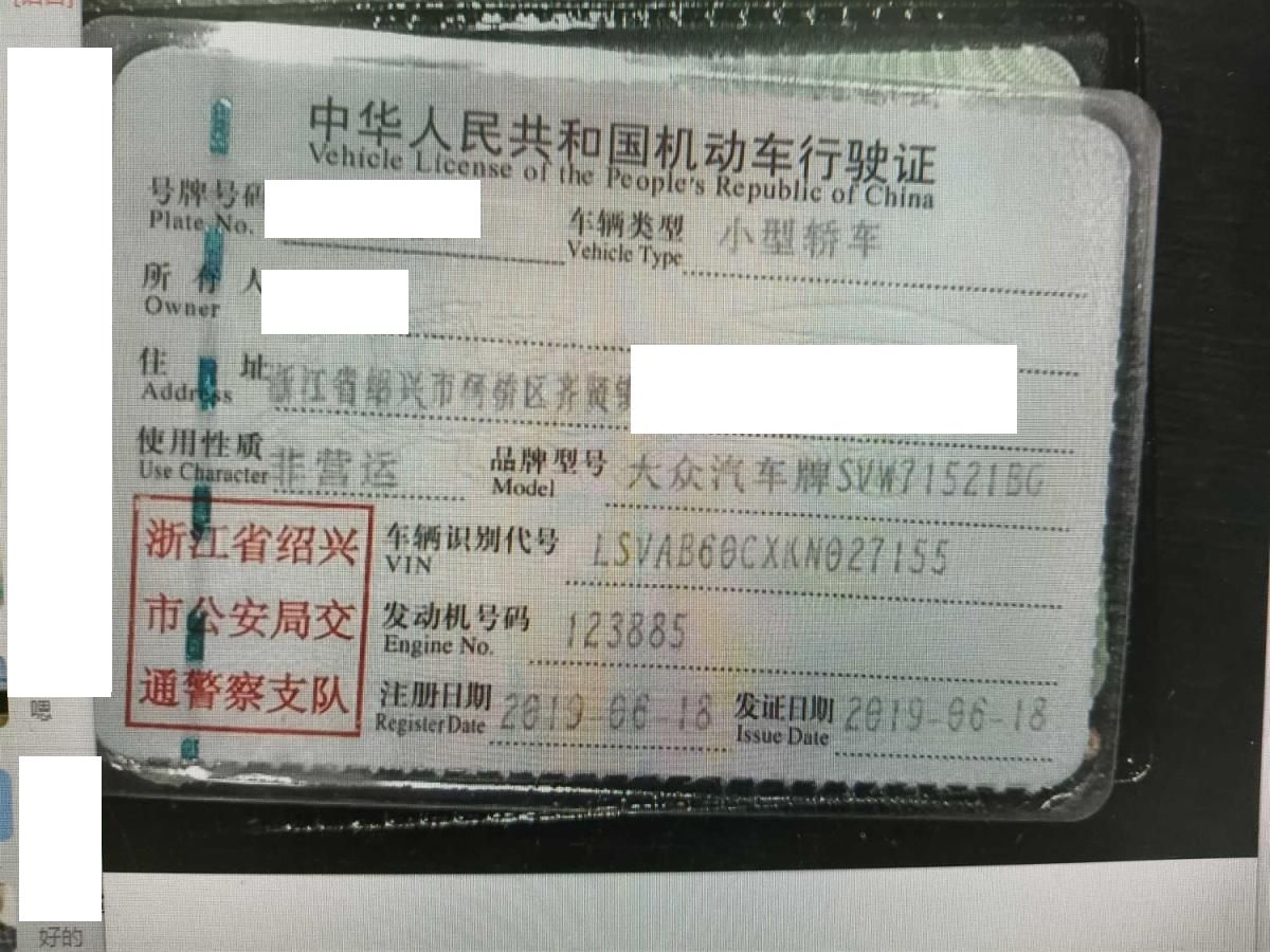 初次登记日期 2019-06-18 车辆名称 大众 朗逸