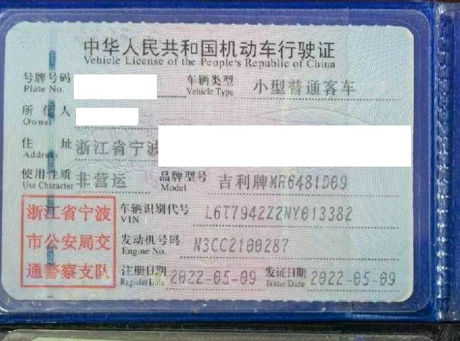 初次登记日期 2022-05-09 车辆名称 吉利汽车 豪越