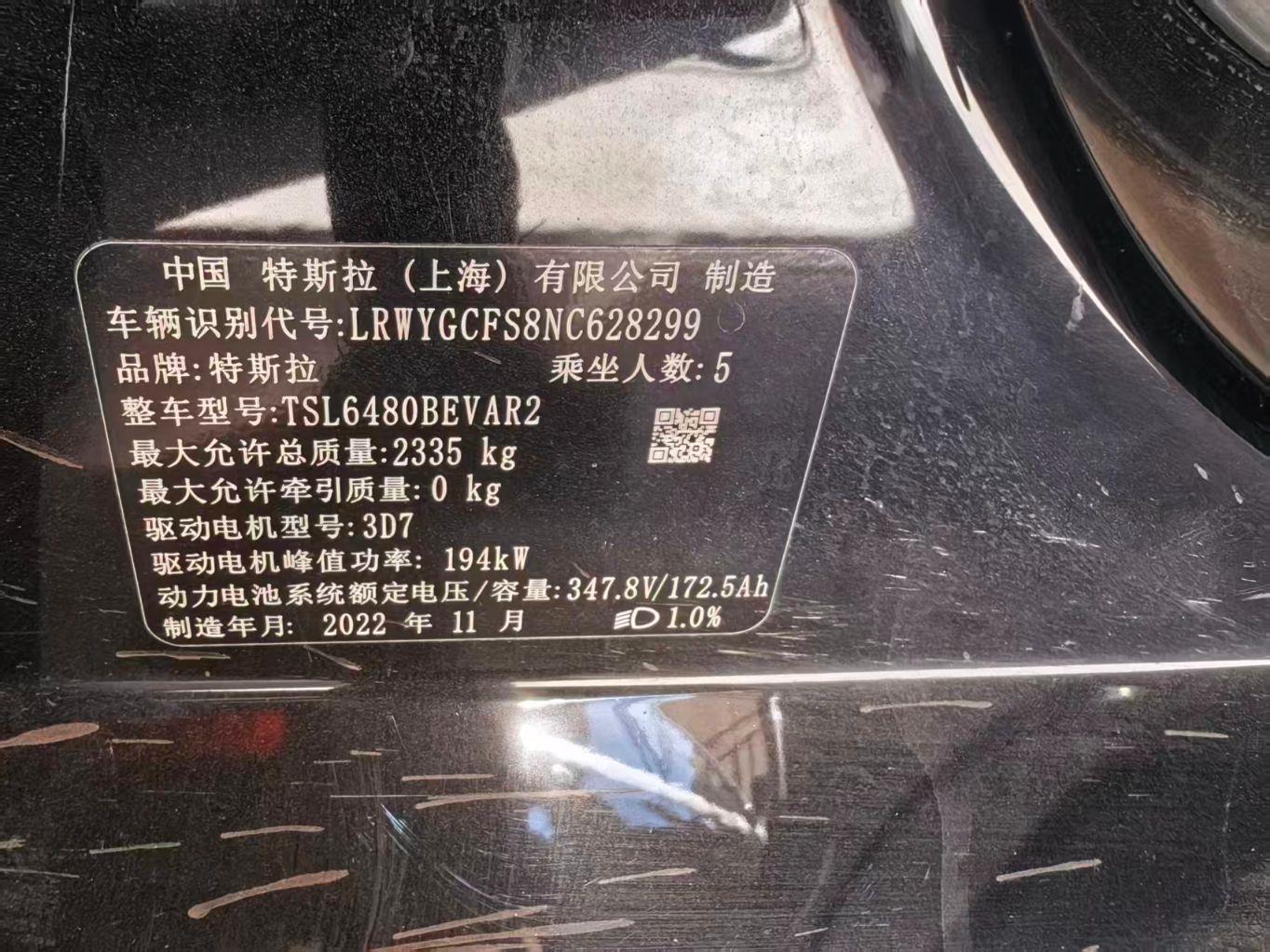 初次登记日期 2022-11-17 车辆名称 特斯拉 Model