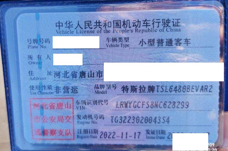 车牌号 冀****** 品牌 特斯拉