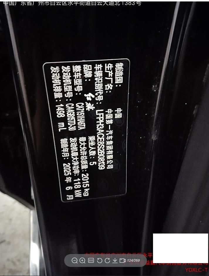 车牌号 粤****** 品牌 红旗