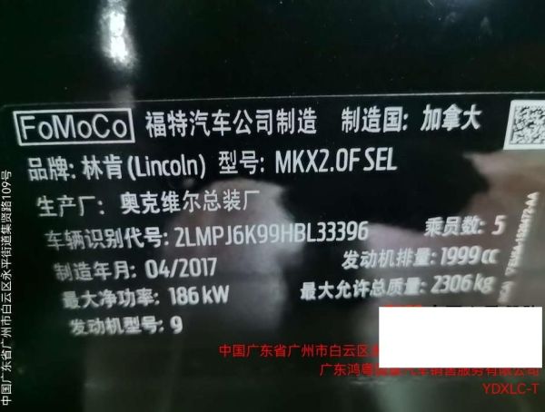 底盘号码 2LMPJ6K99HBL33396 变速箱类型 手自一体
