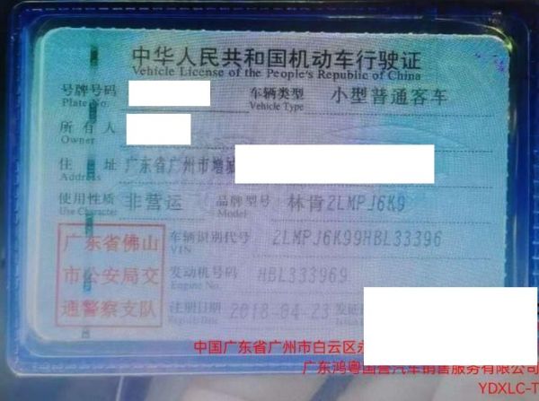 车辆归属地 广东省中山市 车辆停放仓库 广东省广州市广州市