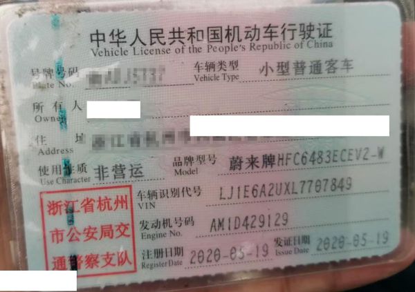 初次登记日期 2020-05-19 车辆名称 蔚来牌