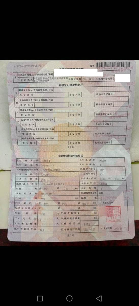 初次登记日期 2021-06-12 车辆名称 大众 速腾