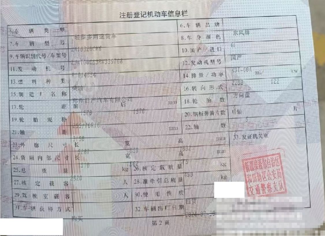 车牌号 新****** 品牌 东风