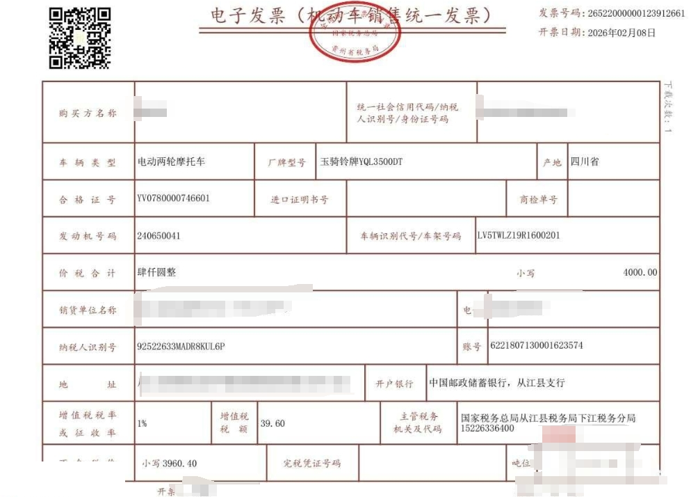初次登记日期 2024-07-01 车辆名称 玉骑铃