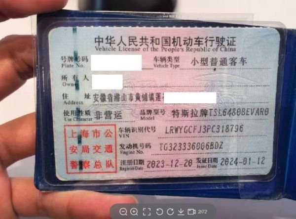 车牌号 沪****** 品牌 特斯拉