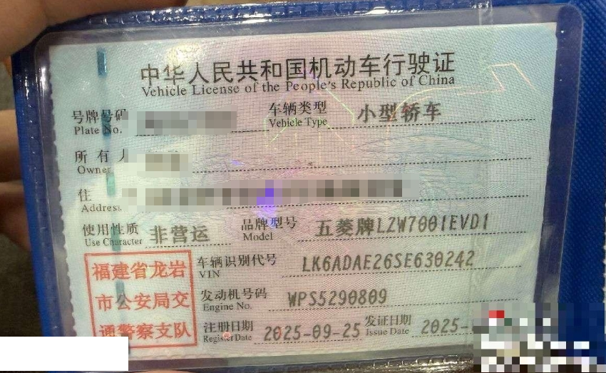 初次登记日期 2025-09-25 车辆名称 五菱汽车