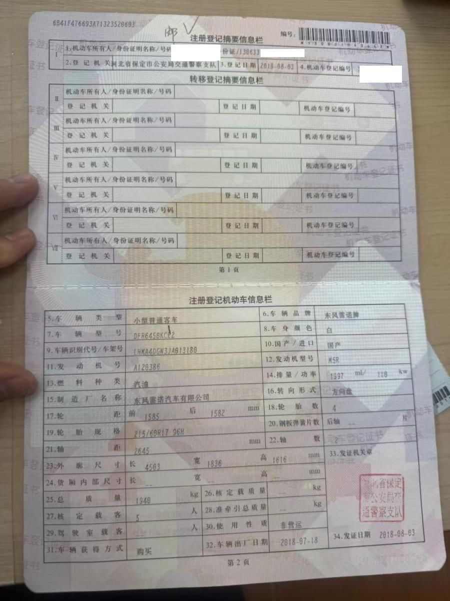 车牌号 冀****** 品牌 雷诺