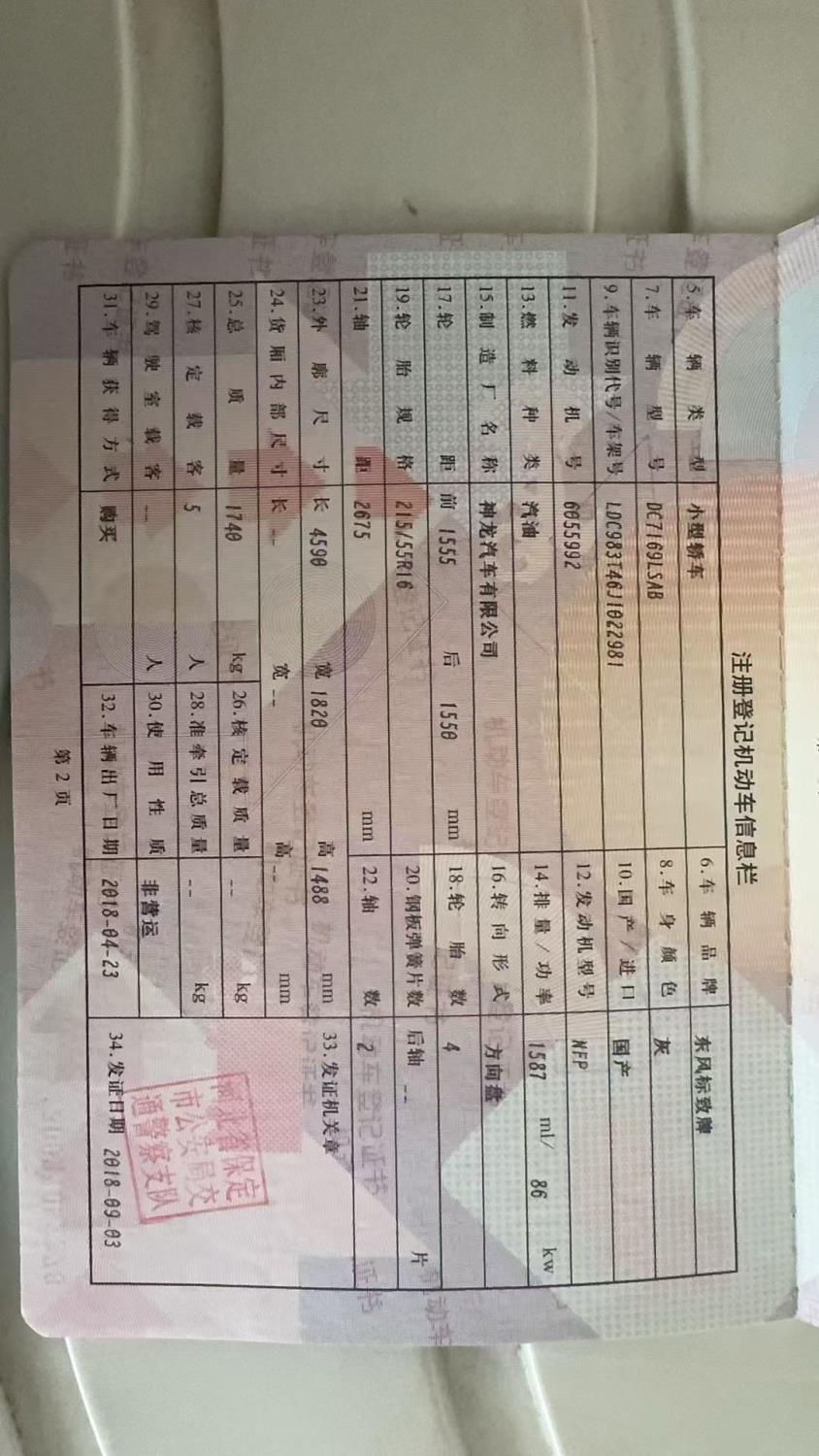 车牌号 冀****** 品牌 东风标致