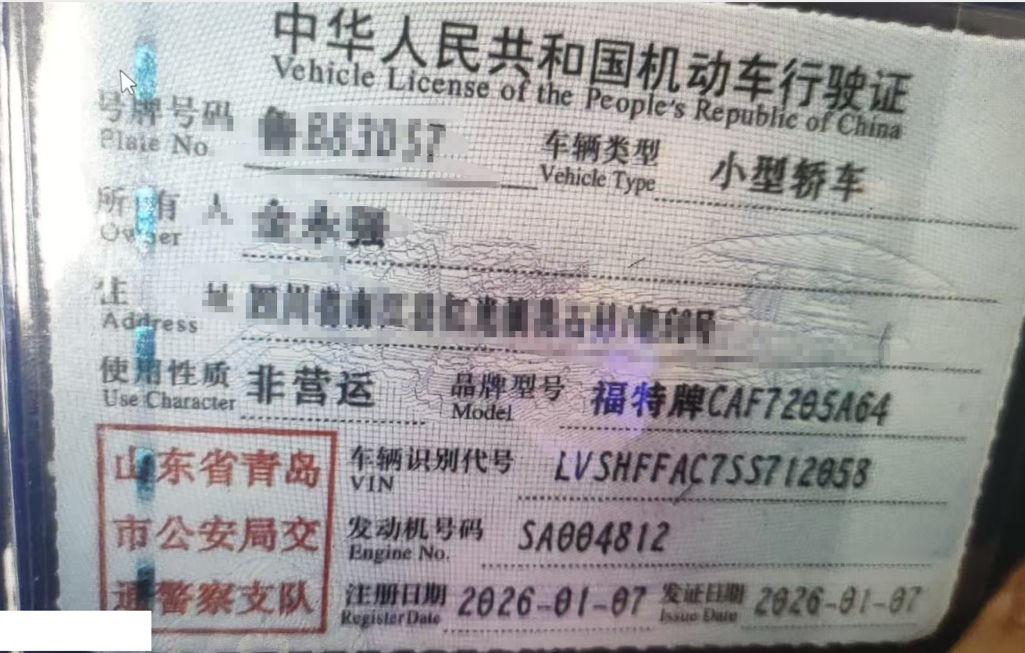 车牌号 鲁****** 品牌 福特
