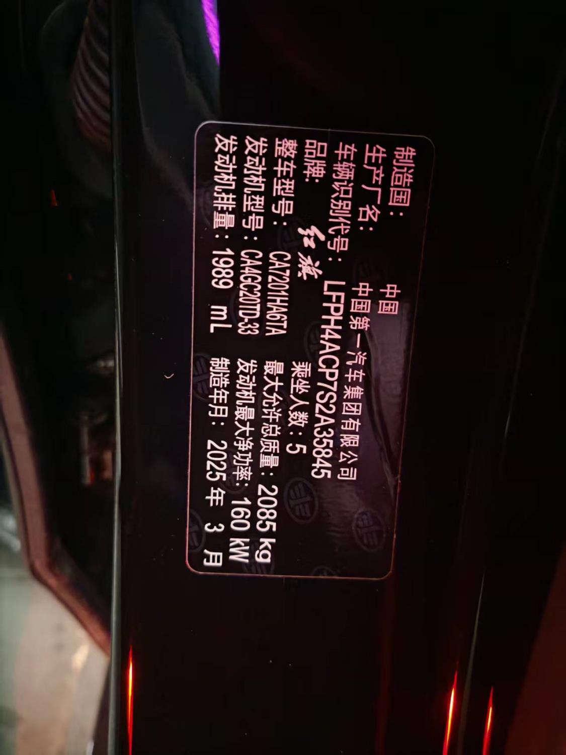 初次登记日期 2025-03-29 车辆名称 红旗牌