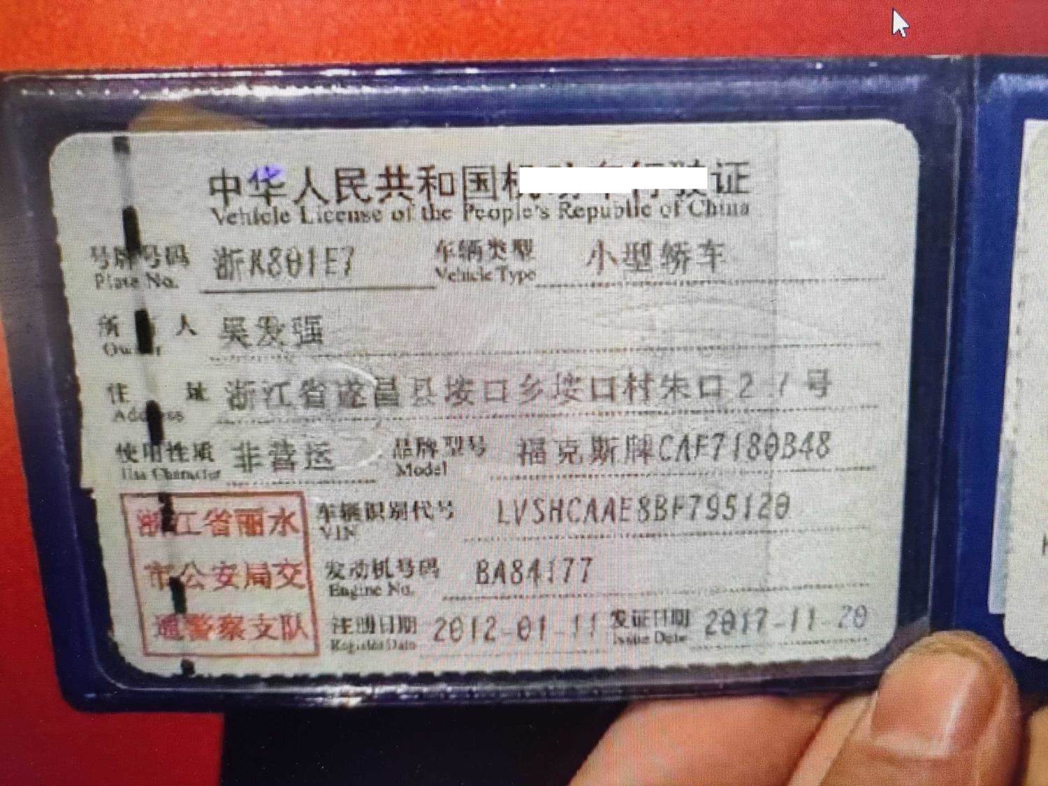 车牌号 浙****** 品牌 福特