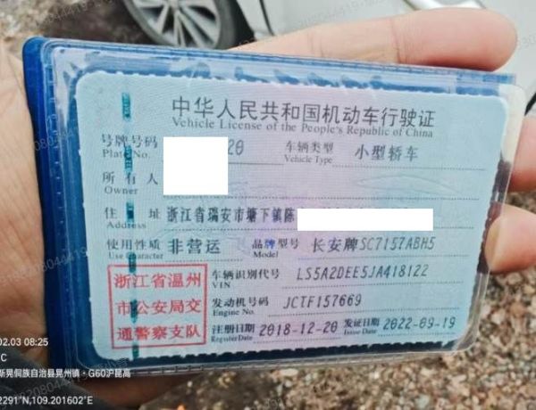车辆归属地 浙江省温州市 车辆停放仓库 湖南省怀化市鹤城区