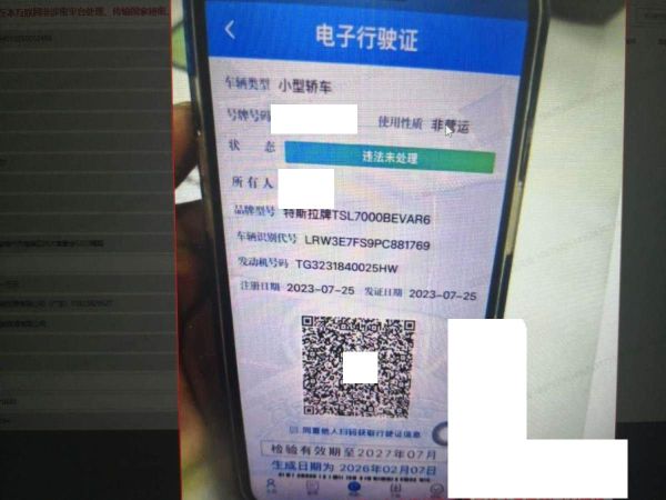 初次登记日期 2023-07-25 车辆名称 特斯拉 Model