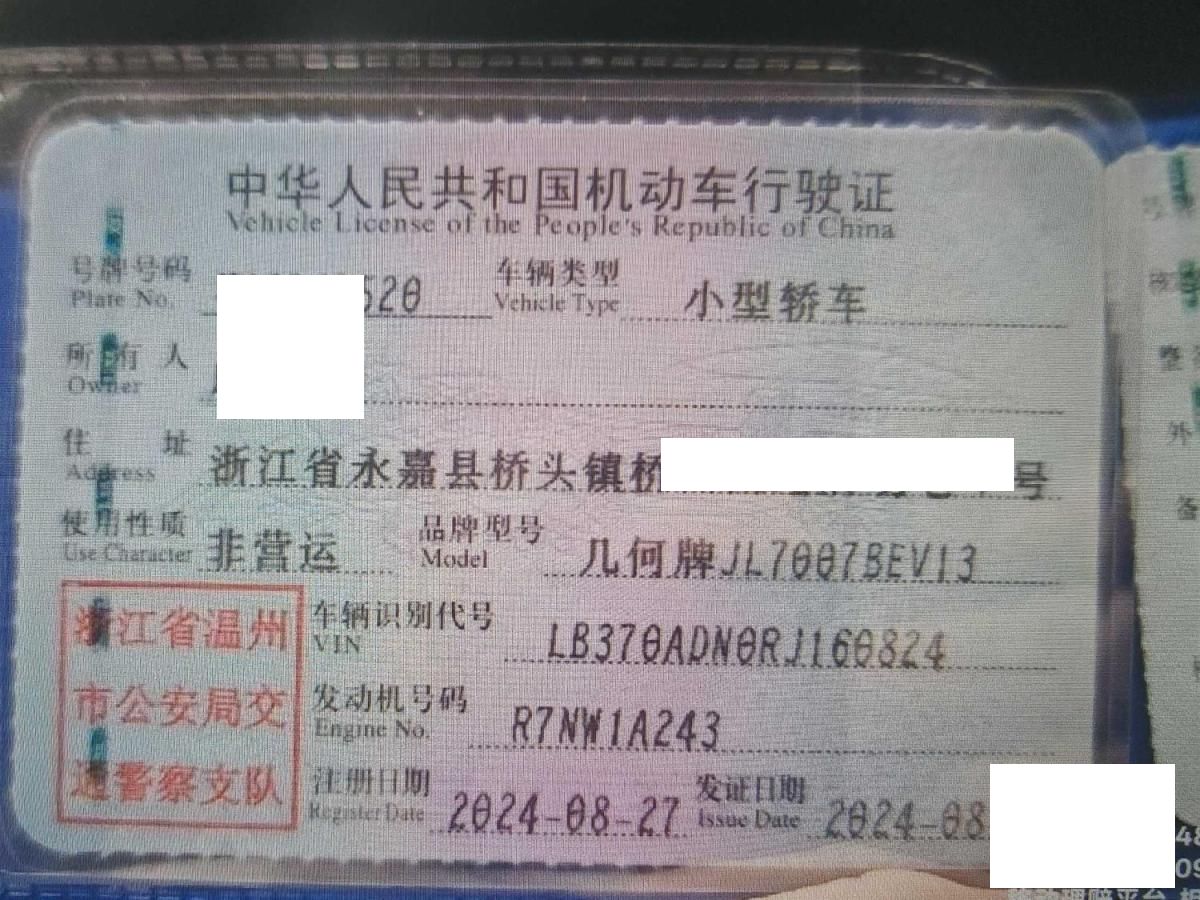 车牌号 浙****** 品牌 吉利