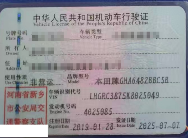 车牌号 豫****** 品牌 本田